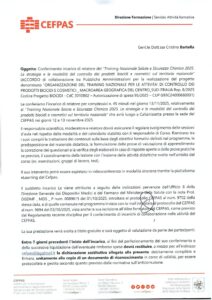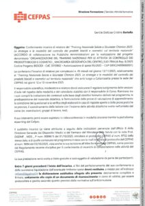 Conferimento incarico BARTELLA CRISTINA Relatore, corso ORGANIZZAZIONE DEL TRAINING NAZIONALE PER LE ATTIVITA DI CONTROLLO DEI PRODOTTI BIOCIDI E COSMETICI REP/8/20225. CODICE PROGETTO BIOCIDI 3010802.