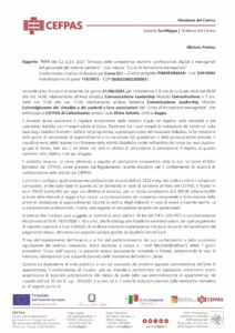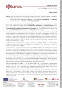 Incarico di docenza Michela Petrina PNRR M6-C2-I2.2.C 2023 “Sviluppo delle competenze tecniche- professionali, digitali e manageriali del personale del sistema sanitario” – sub-misura: “Corso di formazione manageriale” – Corso CL1